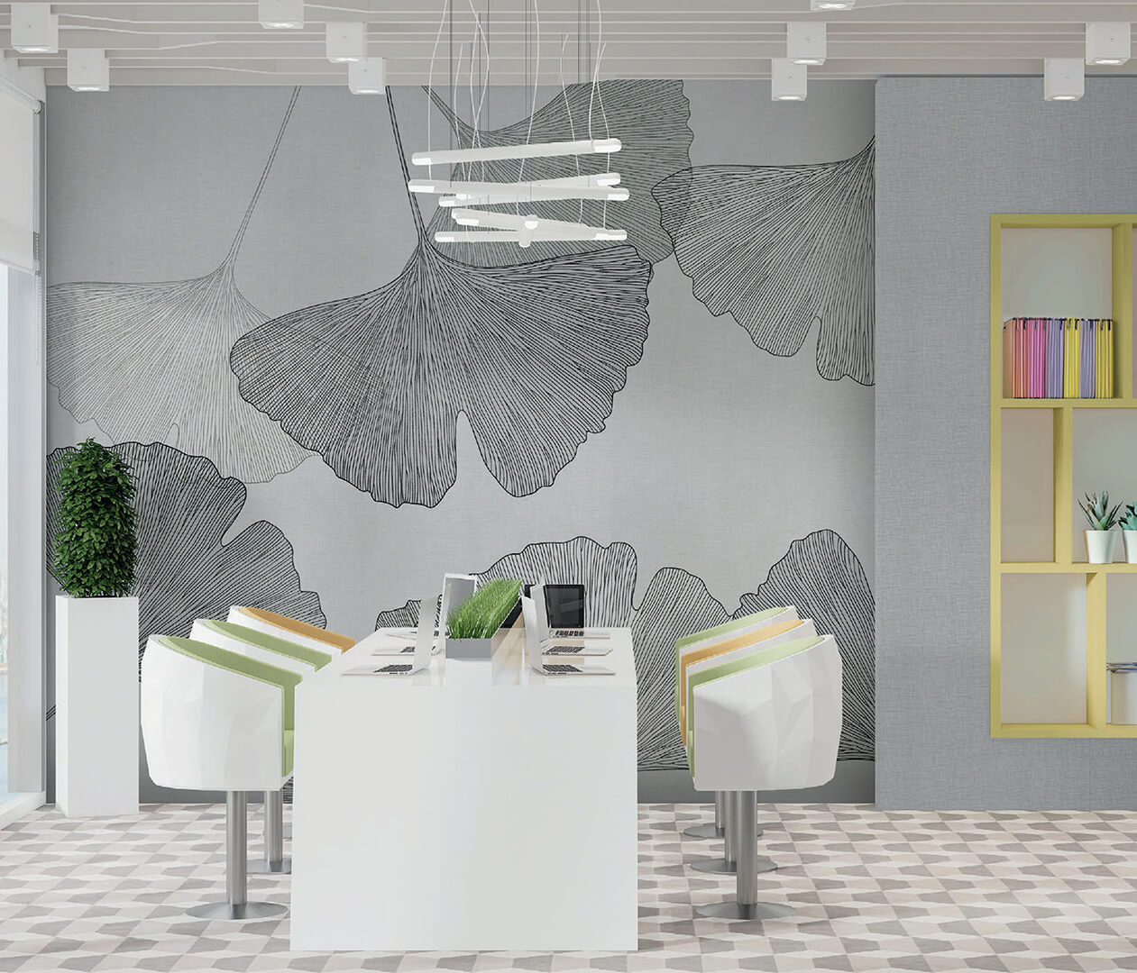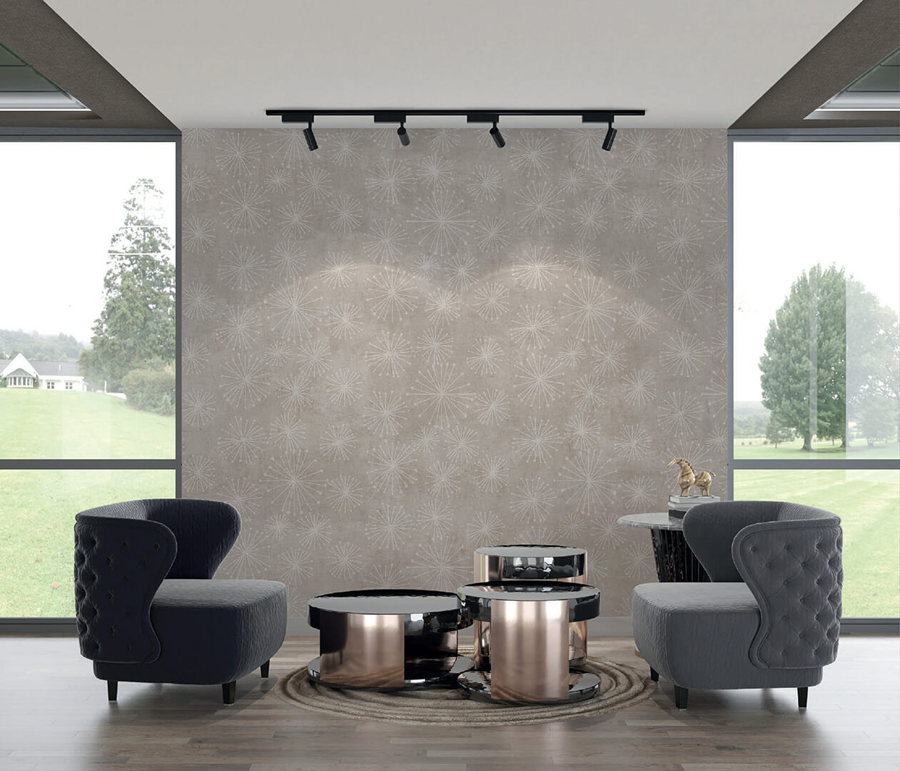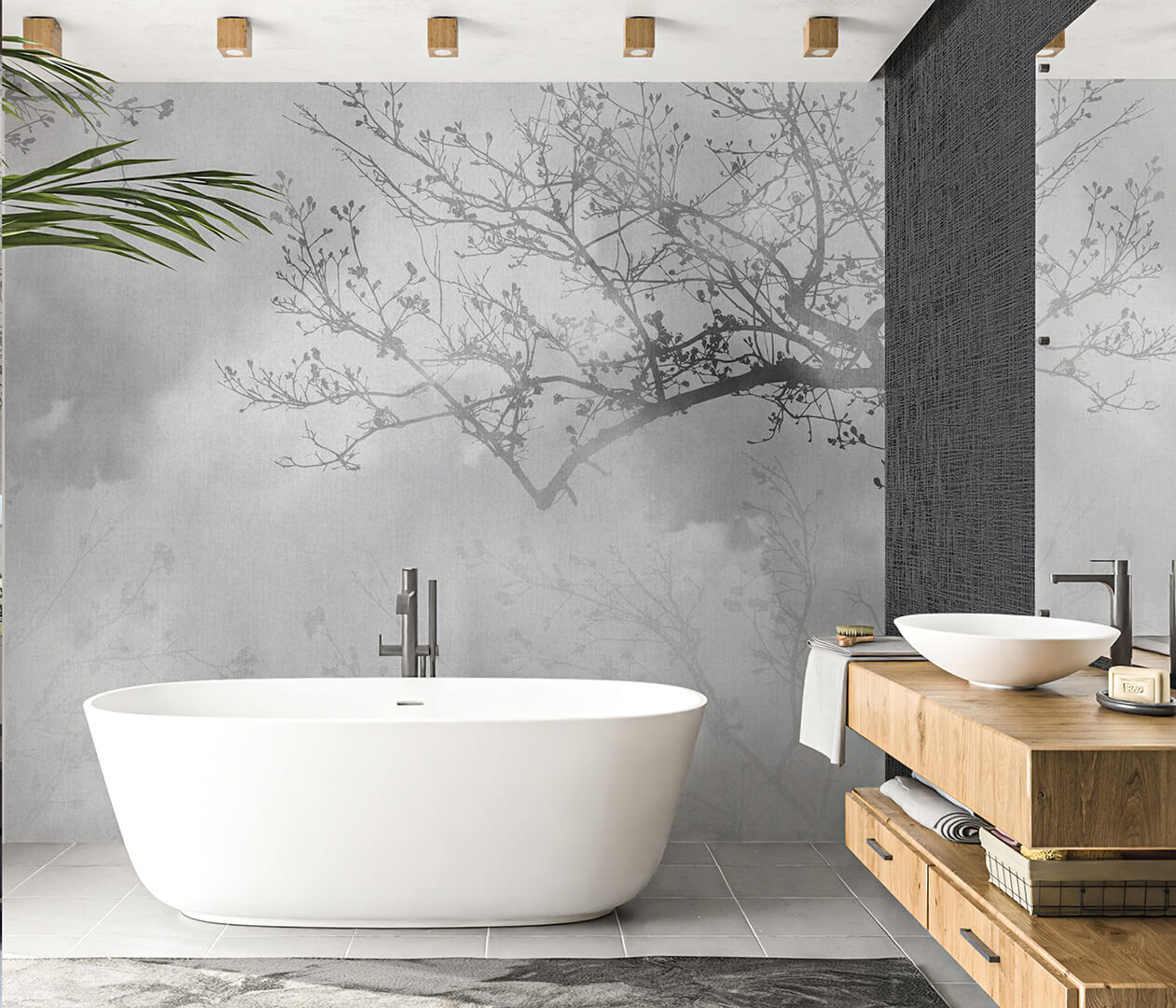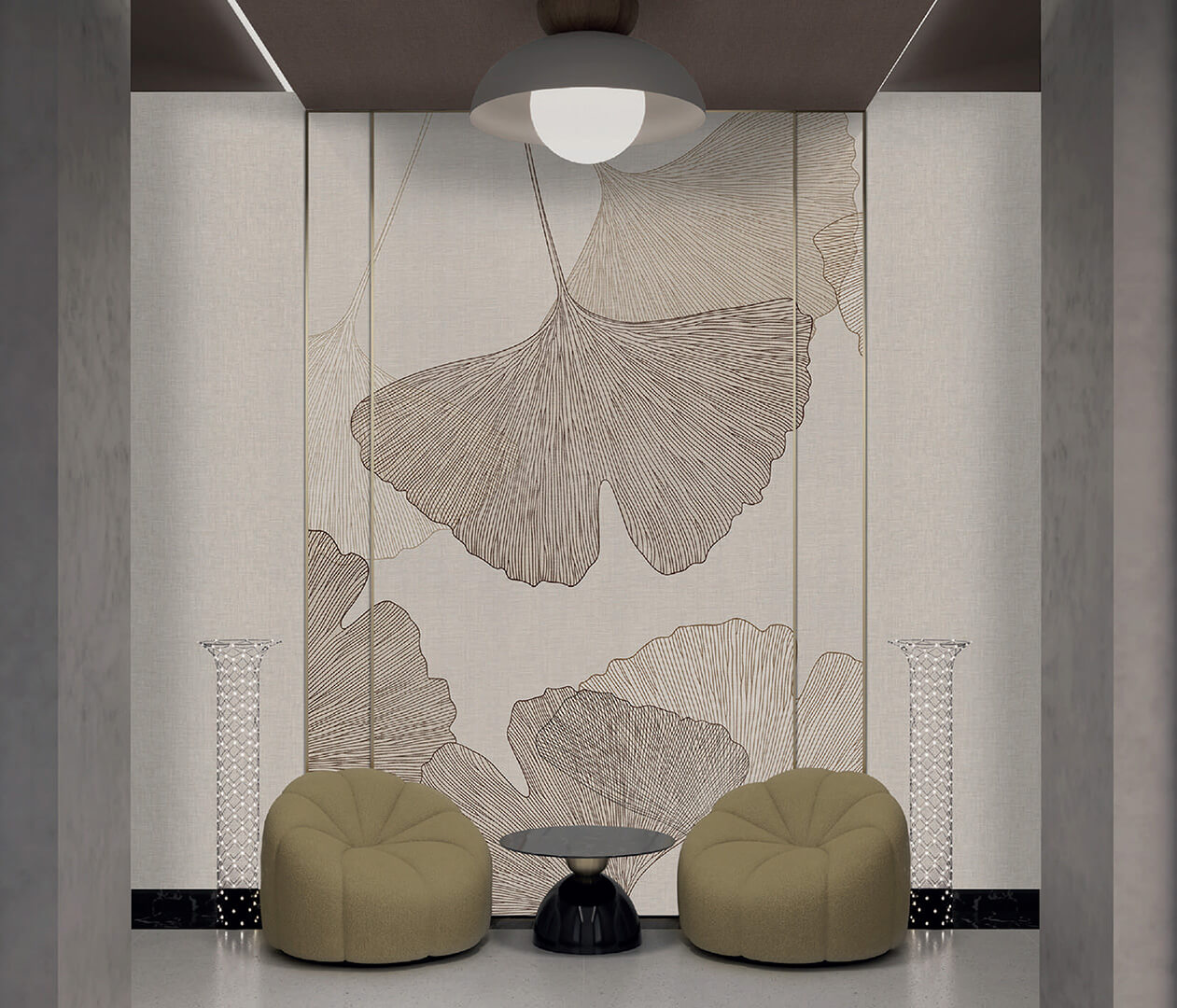 Každý dekor lze přizpůsobit na míru – v barevných odstínech i formátu – což umožňuje pracovat s rytmem prostoru a vizuální kontinuitou v rámci celého projektu.