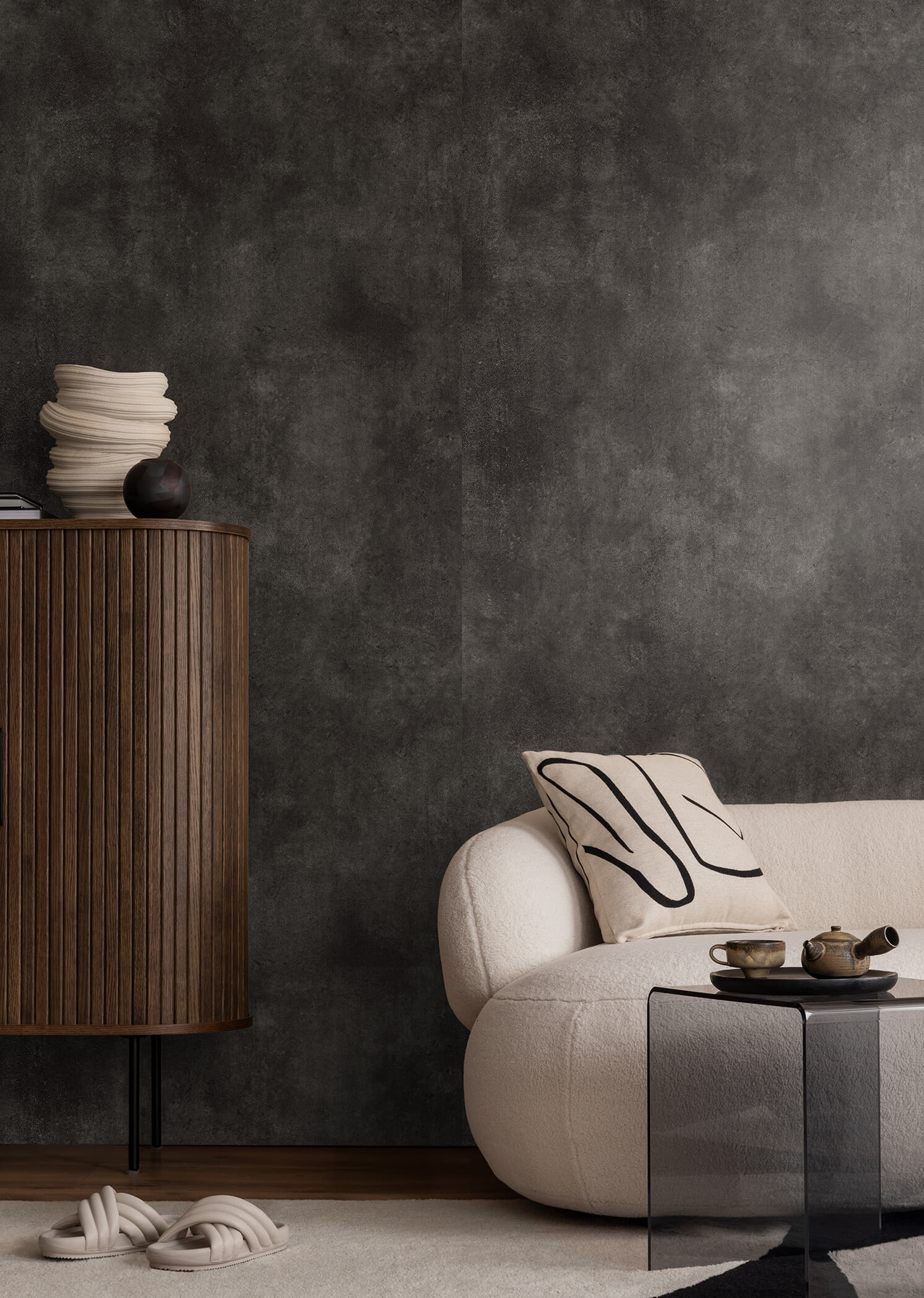 Díky široké škále dekorů – od kamene a betonu až po struktury inspirované dřevem – umožňují panely pracovat se stěnou jako s výrazným architektonickým prvkem.