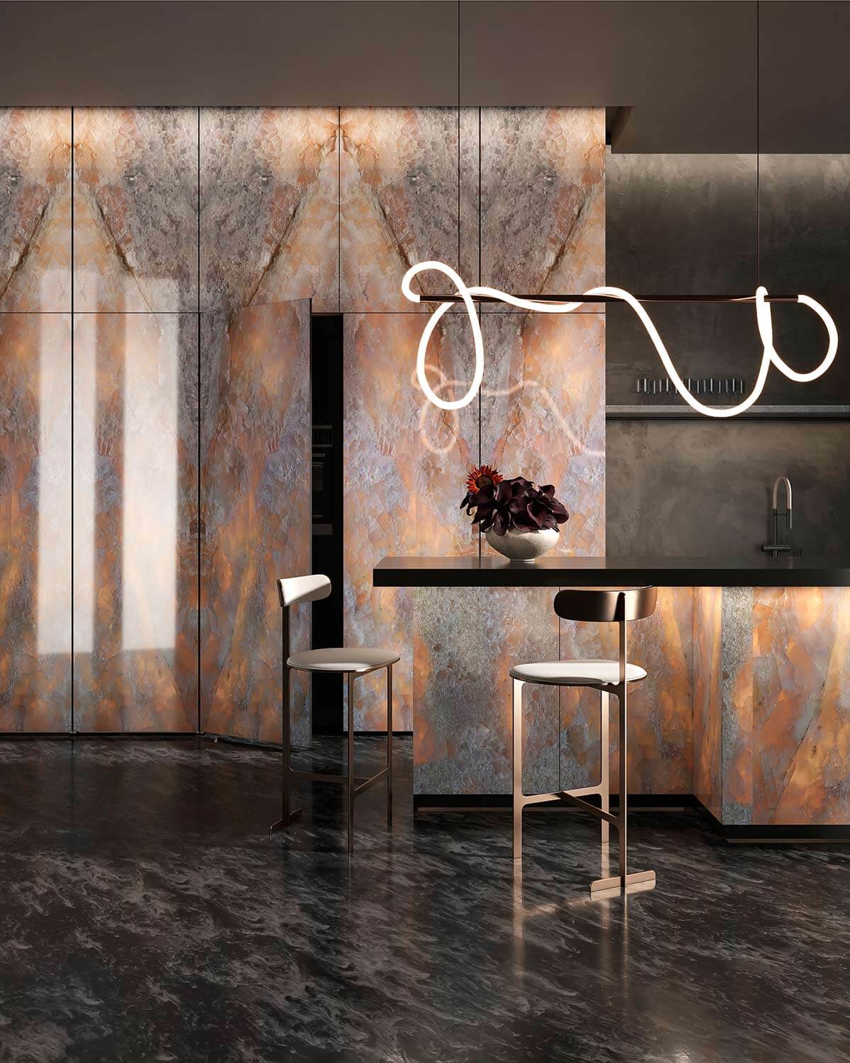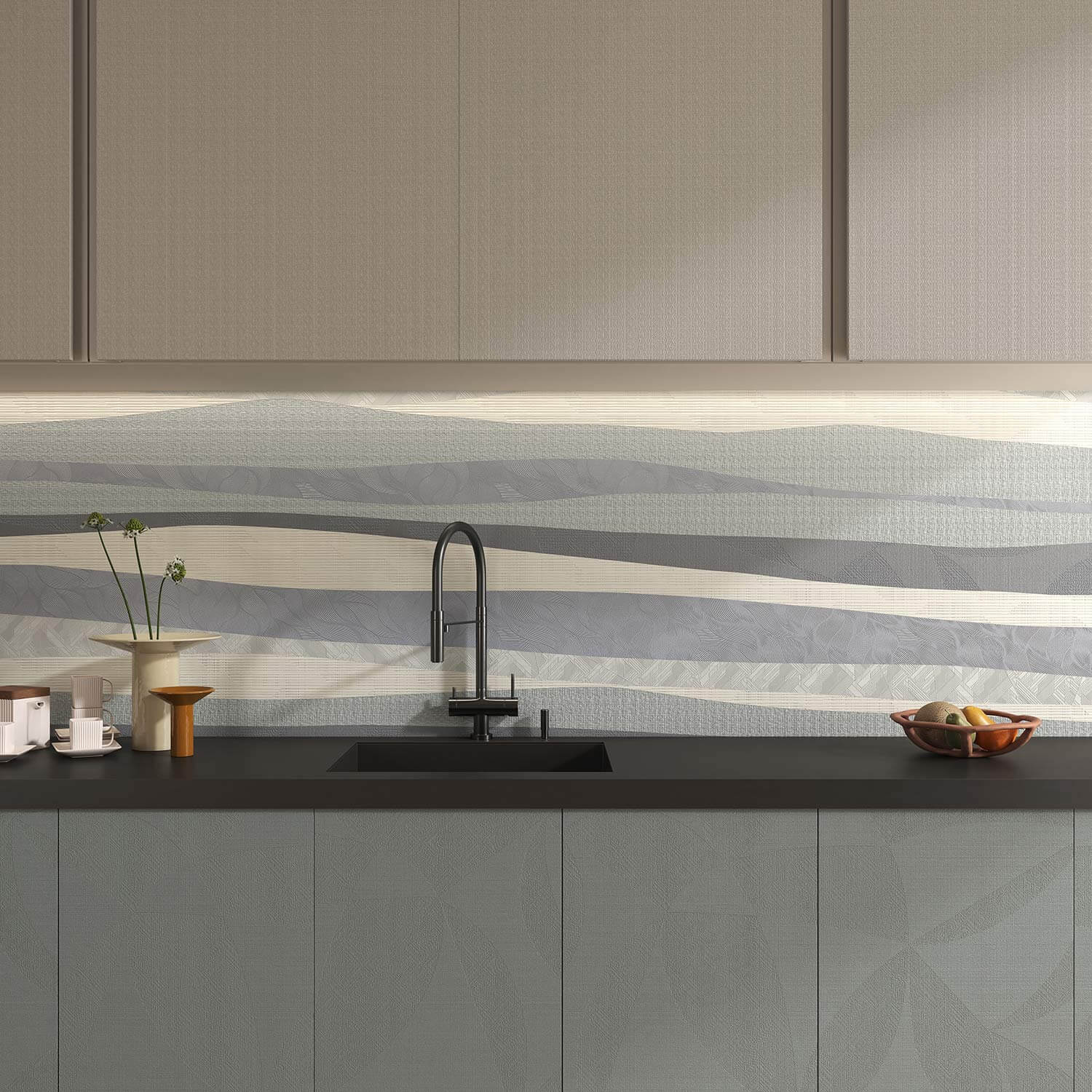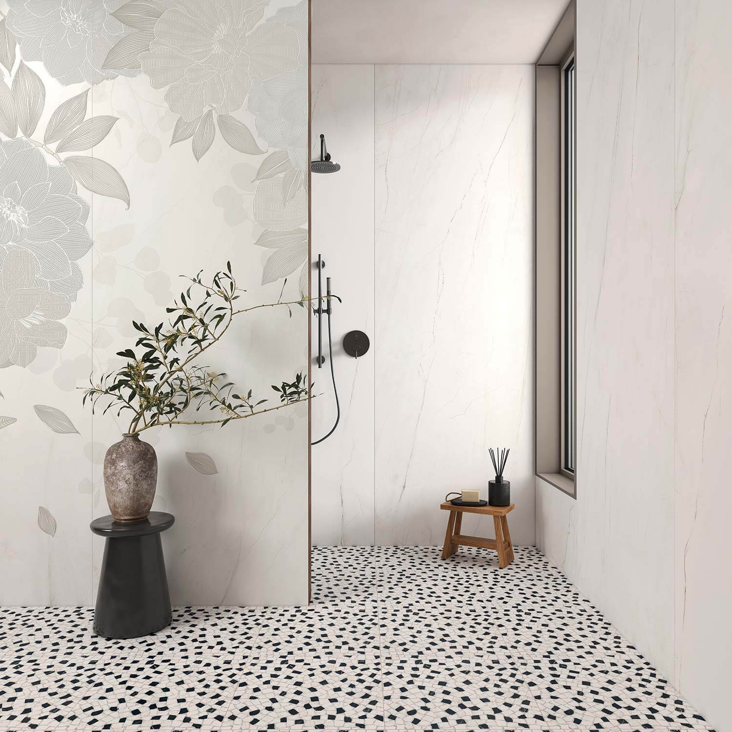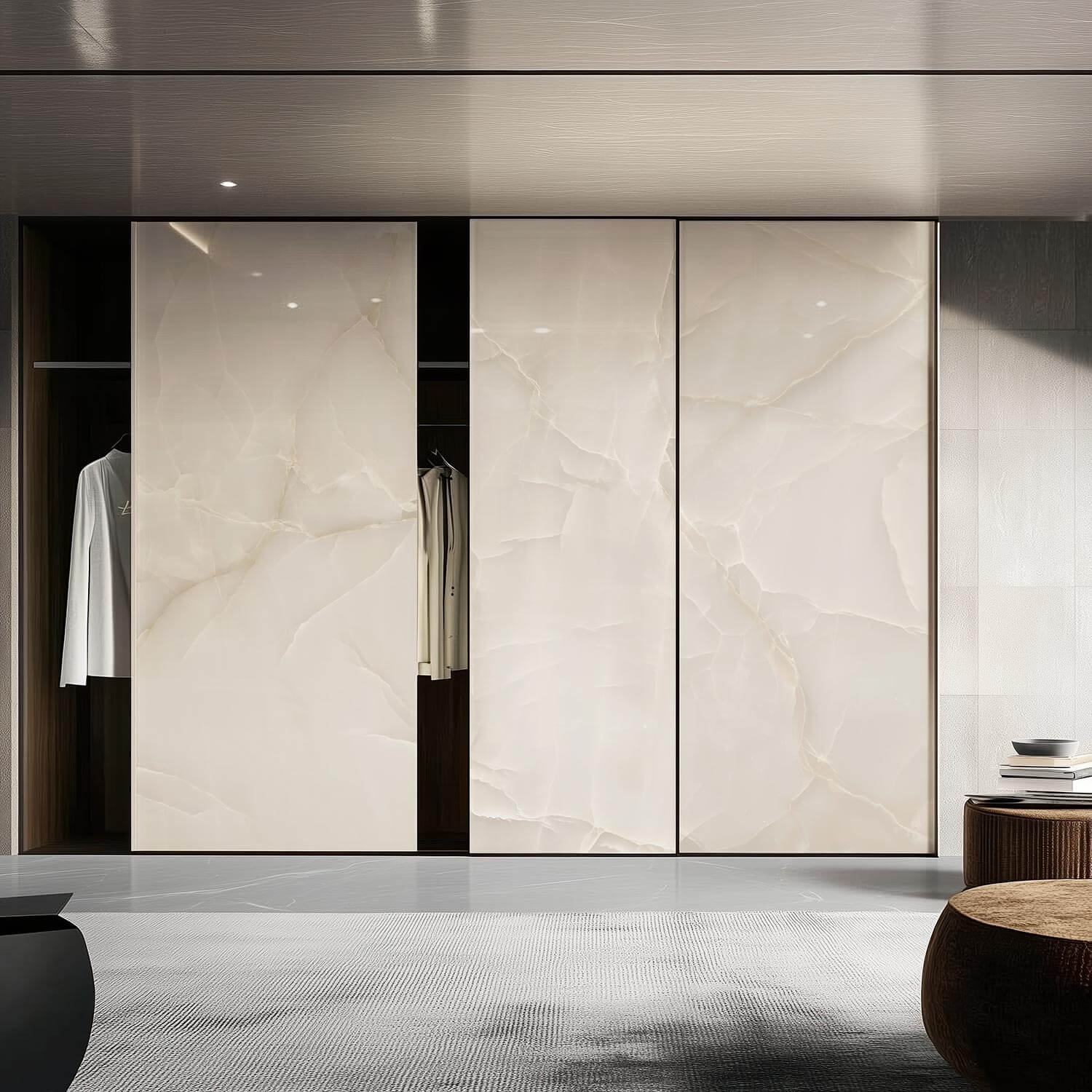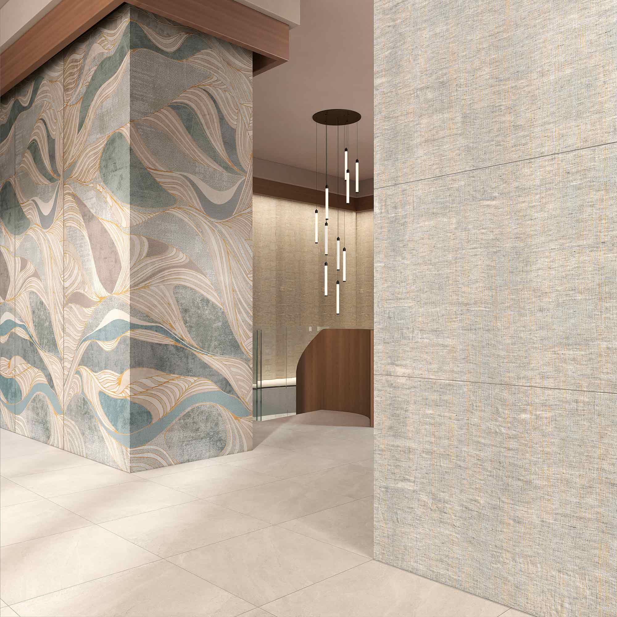 Zrcadlově lesklý povrch, který zvýrazňuje eleganci mramoru, onyxu a dalších drahých kamenů. 3D povrch, který dokonale propojuje texturu a grafiku je ideální pro realistické textury, jako je beton, dřevo, kámen a textilie. Matný saténový povrch je perfektní pro tvorbu sofistikovaných a přirozených efektů v různých interiérech.
