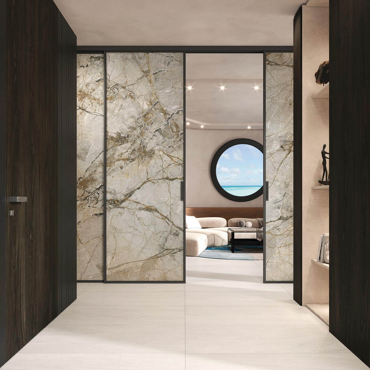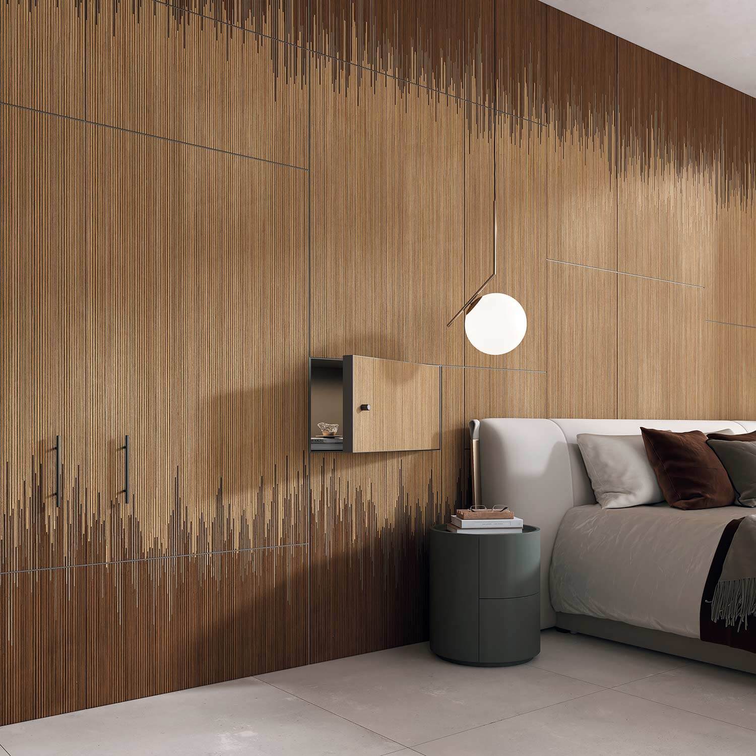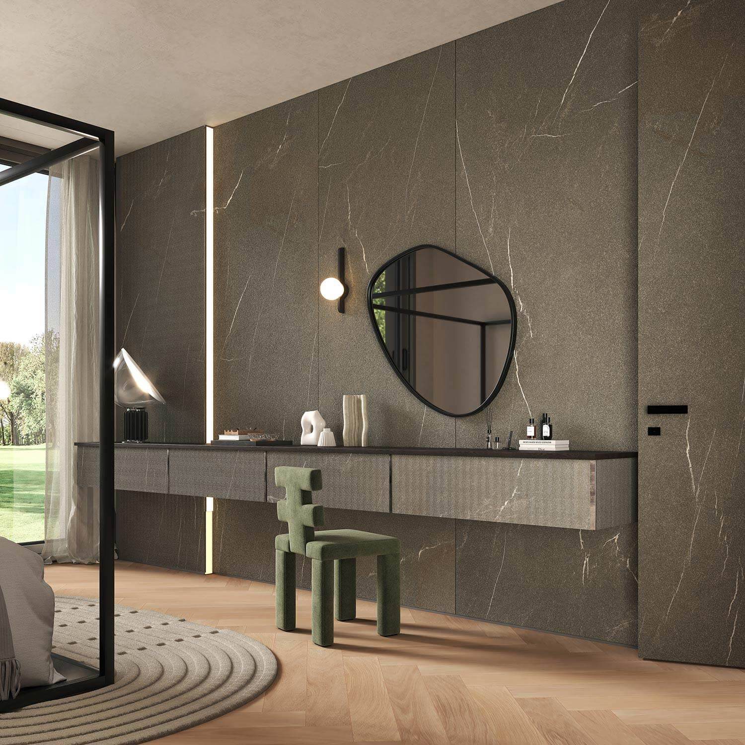 Díky své mimořádné lehkosti, formátu o síle pouze 1,2 mm a výšce až 297 cm a snadné instalaci zcela mění panely Tecnografica způsob, jakým přistupujeme k obkladům stěn či nábytkovým řešením.