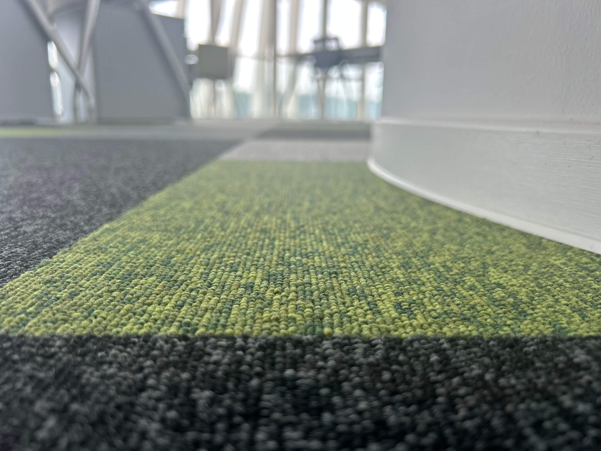 Pro dosažení požadovaného efektu jsme kombinovali 6 odstínů kobercových čtverců (N910/ N940/ N932/ N992/ N990/ N220, standardizovaný rozměr 50 x 50 cm) v celkovém objemu cca 250 m2.